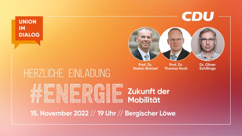 Wie können wir Mobilität in der Zukunft wirtschaftlich, ökologisch und sozial gestalten? Dieser Frage widmete sich die Auftaktveranstaltung der Reihe „Union im Dialog #Energie“ der CDU Bergisch Gladbach und der CDU Rheinisch-Bergischer Kreis. Knapp 60 Personen verfolgten eine lebhafte Diskussion zwischen Prof. Dr. Stefan Bratzel (Gründer und Direktor des Center of Automotive Management in Bergisch Gladbach) und Prof. Dr. Thomas Koch (Leiter des Instituts für Kolbenmaschinen am Karlsruher Institut für Technologie), moderiert von Dr. Oliver Schillings.