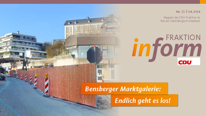 Fraktioninform wird seit 2010 quartalsweise von der CDU-Stadtratsfraktion Bergisch Gladbach herausgegeben. Alle Mitglieder der CDU und unserer Vereinigungen sowie interessierte Bürger/innen, Unternehmer/innen, Vereine, Verbände und Organisationen in unserer Stadt erhalten diese kostenlos gedruckt per Post. fraktion [at] cdu.gl (subject: Fraktioninform) (Gerne nehmen wir Sie in den kostenlosen Verteiler auf. Kurze Mail mit Ihrer Postanschrift genügt.) Außerdem sind die Ausgaben über die Internetseite der CDU in Bergisch Gladbach abrufbar.