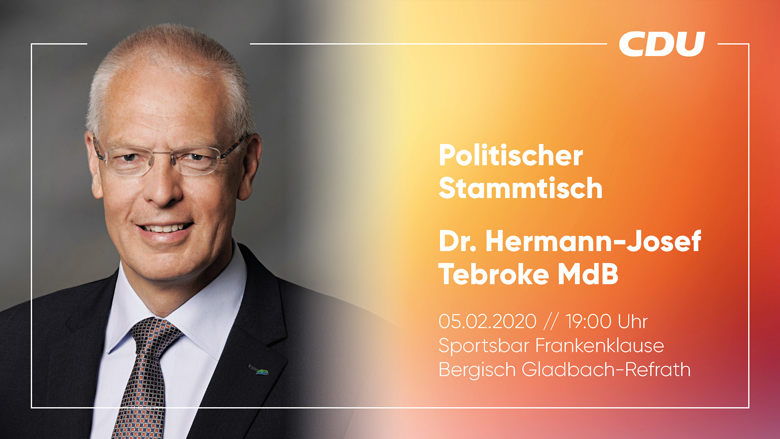 Der vierte politische Stammtisch mit unserem Bundestagsabgeordneten Dr. Hermann-Josef Tebroke MdB und seinem Bericht ausd Berlin. (Ursprünglicher Termin: 04.12.2019)