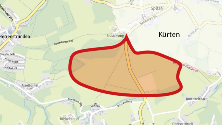 Fast 50 Hektar mitten auf der grünen Wiese vor Spitze sollen laut Beschluss von Grünen, SPD und FDP nun doch zur Entwicklung eines Gewerbegebietes auf Bergisch Gladbacher Seite zur Verfügung stehen – zusätzlich zu den angrenzenden Flächen direkt dahinter, welche die Gemeinde Kürten schon seit Jahren zu einem Gewerbegebiet entwickeln möchte. Zum Vergleich: Das gesamte Zanders-Gelände ist mit 37 Hektar deutlich kleiner.